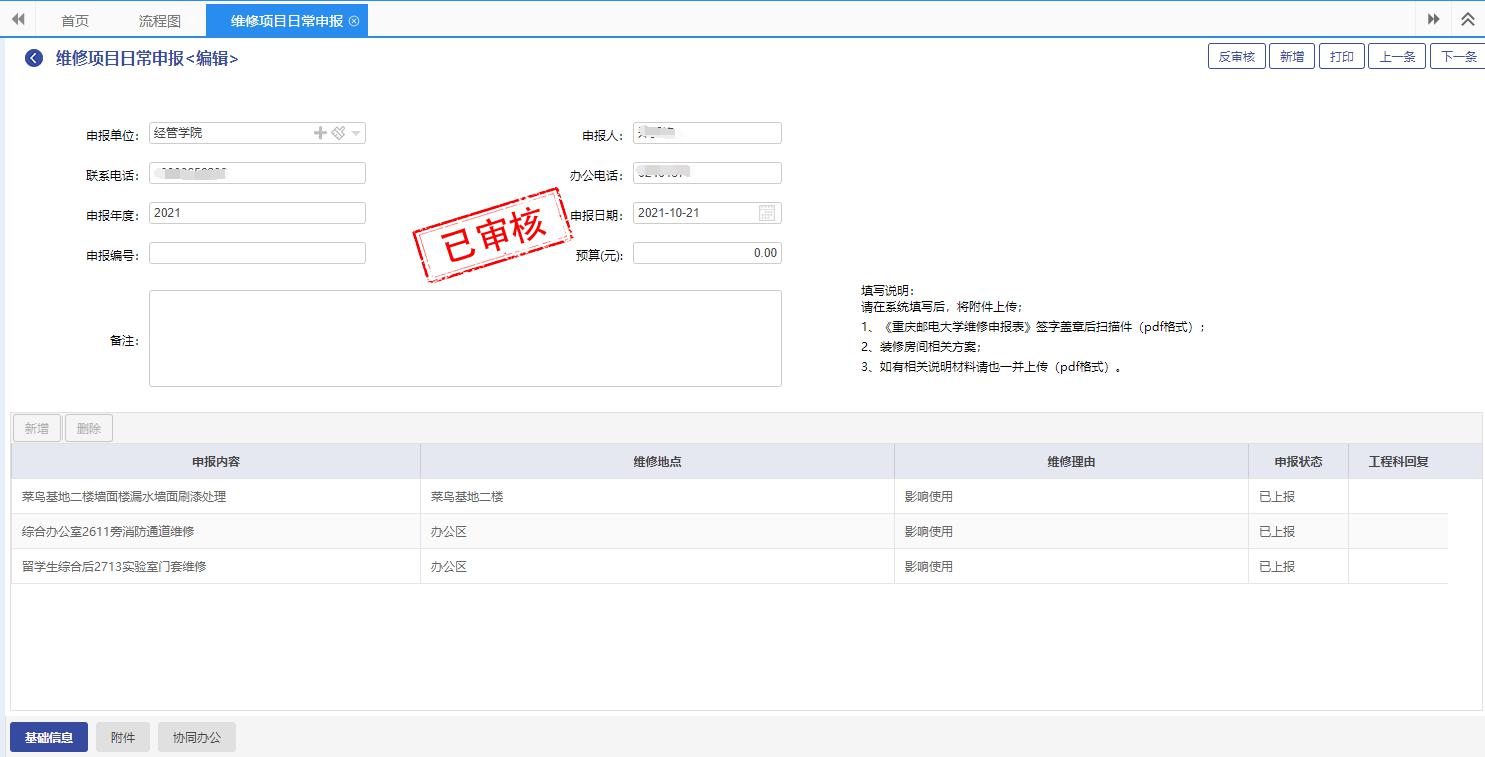 重邮基徏处以信息化徏设ؓ(f)H破口,基本工程理信息pȝQ创新管理方式,利用信息化手D对基徏?qing)修~项目从目报徏、设计、招投标、签订合同、施工管理、投资控制至资料理、维修管理全q程的数据进行归U뀁统计、分析,实现目全过E监控、管理信息分析查询、信息辅助决{,推进目理规范化、程序化、科学化。提高管理质量和效率Q加强廉政徏设?/p>