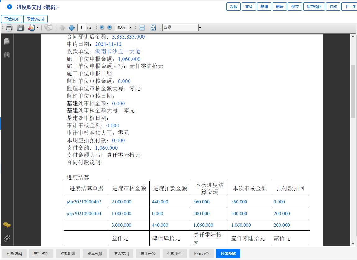 用业务表?功能做一个菜单,在菜单中选择一个打印模板,填写相关字段Q单据保存后Q可以自动将指定字段插入到模杉K件中Qƈ转化成PDF文g查看Q也可以直接上传Word附gQ保存后附件{换成PDF文g查看?/p>