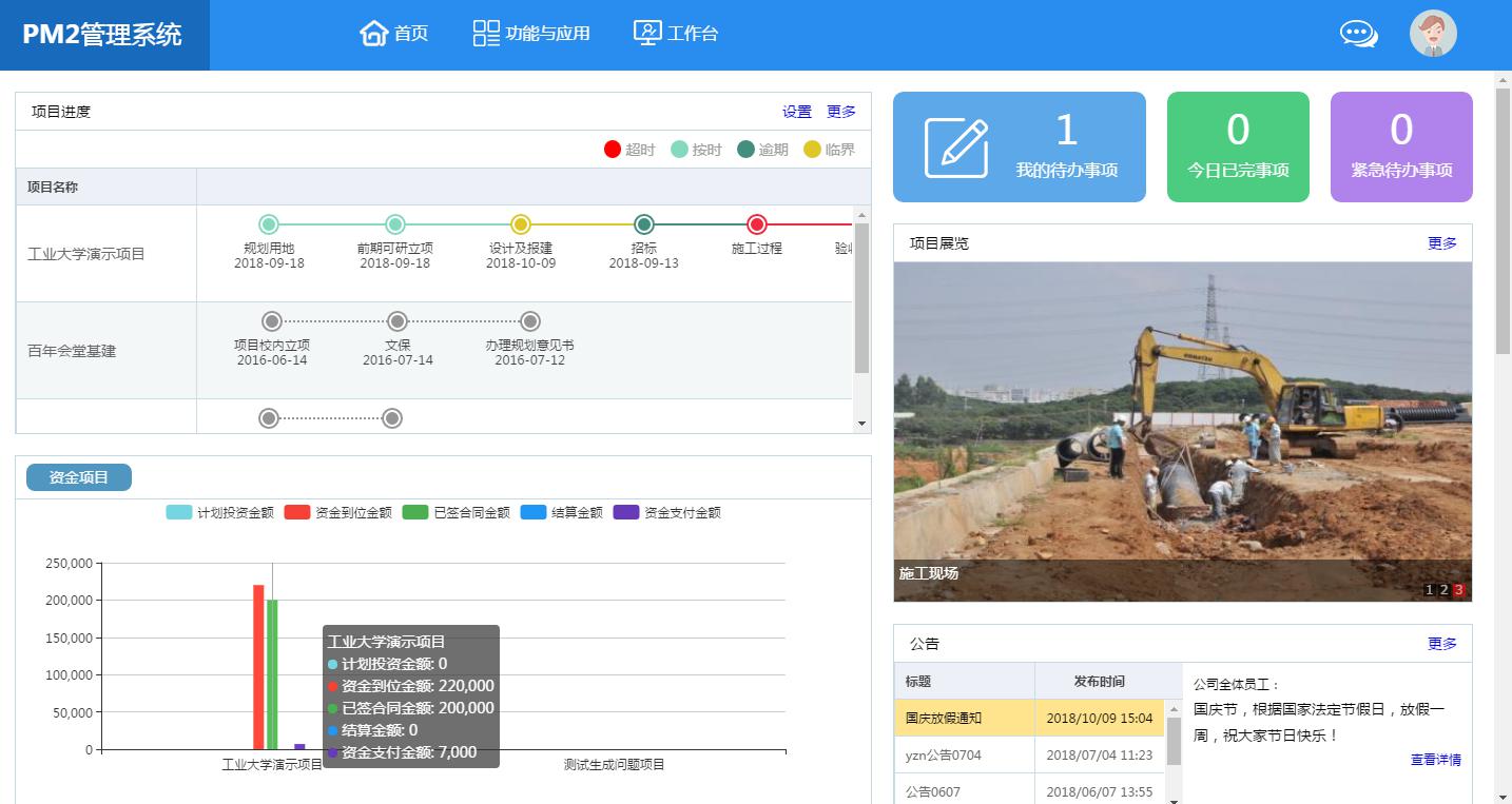 1、领导总览Q包括项目红l灯、综合指标分析等功能Q以最人性化的直观图形界面,方便学校和后勤保障部领导查看分析各个目的Mq度情况Q包括项目概c项目进度与阶段性成果、资金情况及指标分析、签U与资金支付情况、Ş象进度与现场日志、待办工作与风险Ҏ(gu)醒等Qؓ各领导提供决策支持?/p>
